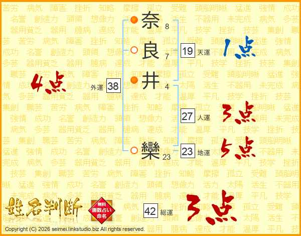 奈良井欒さんの人運は27画の3点!