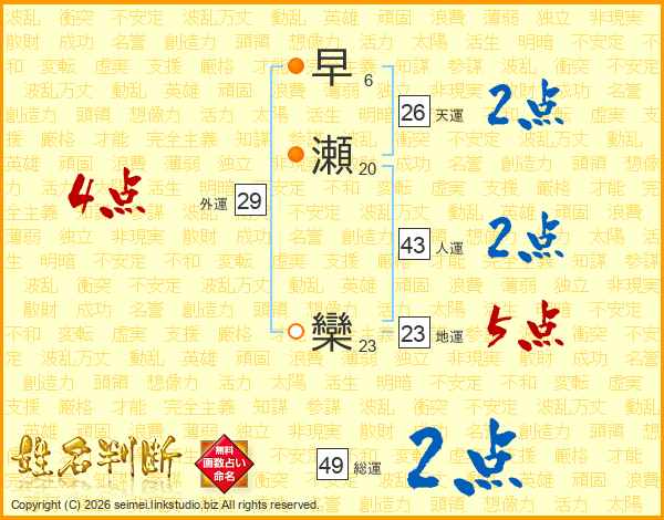 早瀬欒さんの天運は26画の2点!