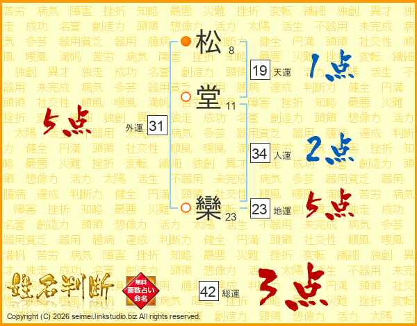 松堂欒さんの総運は42画の3点!