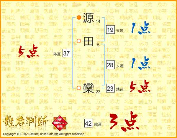 源田欒さんの外運は37画の5点!