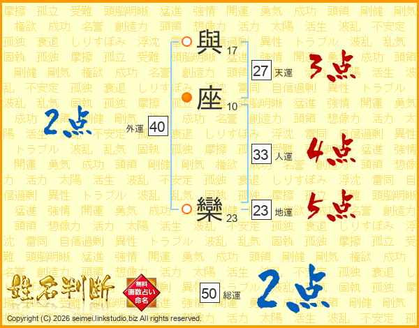 與座欒さんの総運は50画の2点!