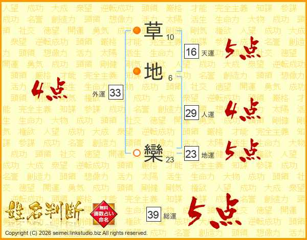 草地欒さんの総運は39画の5点!