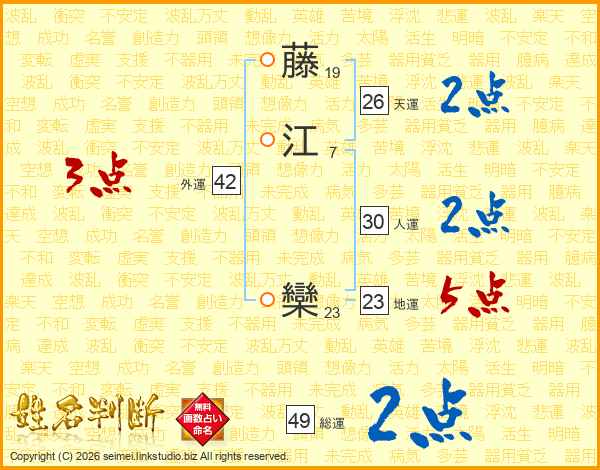 藤江欒さんの天運は26画の2点!