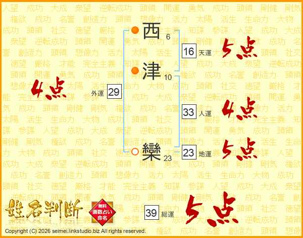家系が持つ宿命的な運勢を表します。祖先から受け継いだ苗字ですので自分の力が及びません。家柄を象徴します。苗字の合計画数。