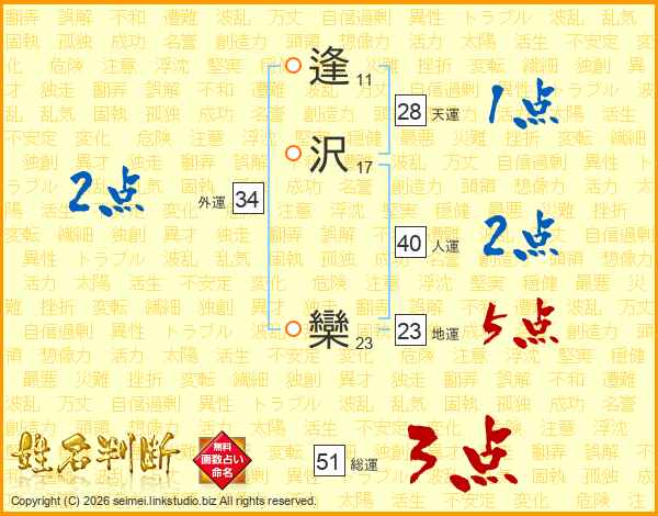 逢沢欒さんの総運は51画の3点!