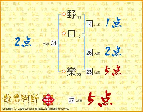 野口欒さんの総運は37画の5点!