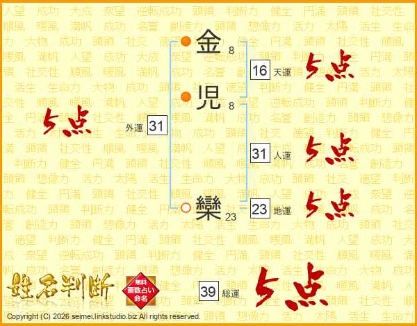 金児欒さんの総運は39画の5点!