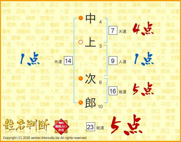 中上次郎さんの天運は7画の4点!
