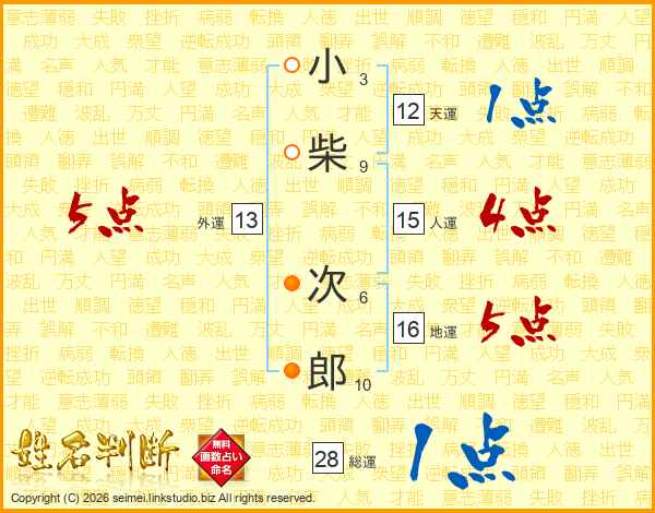 小柴次郎さんの総運は28画の1点!