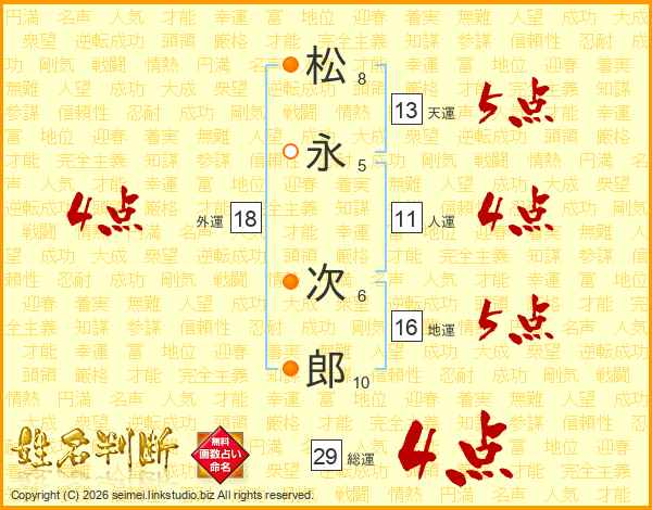 松永次郎さんの天運は13画の5点!