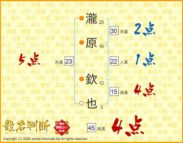 瀧(20画)原(10画) 欽(12画)也(3画)