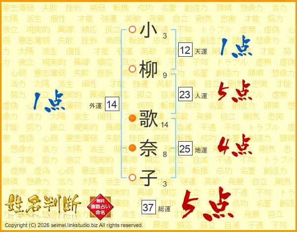 小柳歌奈子さんの総運は37画の5点!