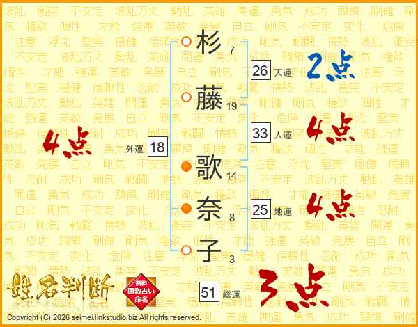 杉藤歌奈子さんの人運は33画の4点!