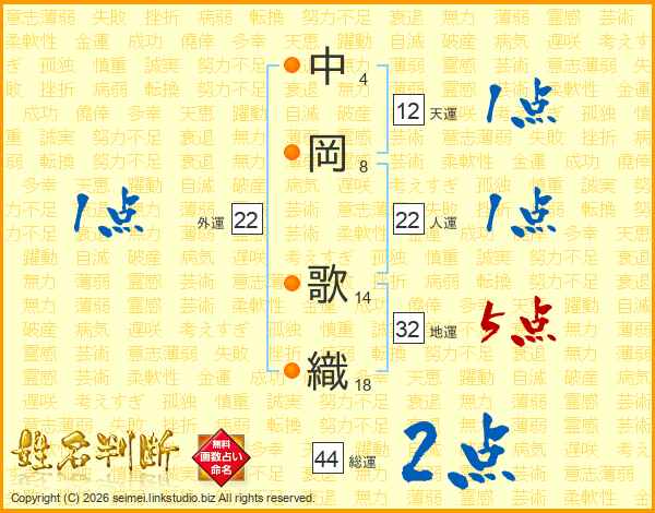 中岡歌織さんの総運は44画の2点!