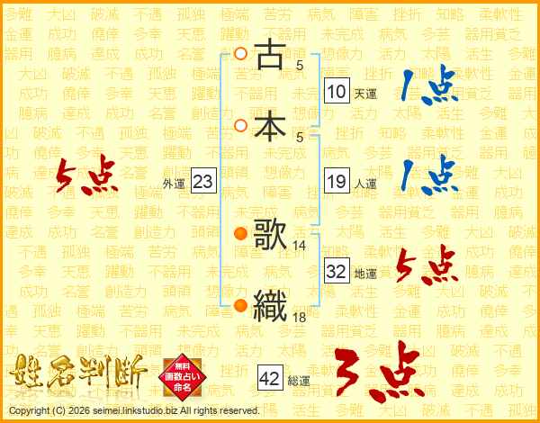 古本歌織さんの人運は19画の1点!