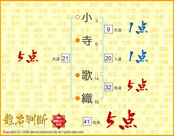 小寺歌織さんの外運は21画の5点!