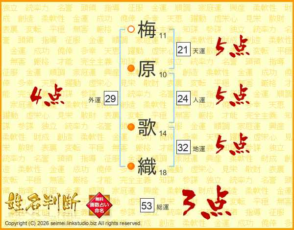梅原歌織さんの天運は21画の5点!
