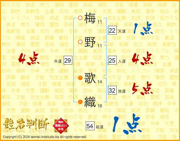梅野歌織さんの天運は22画の1点!