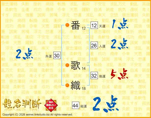 番歌織さんの総運は44画の2点!