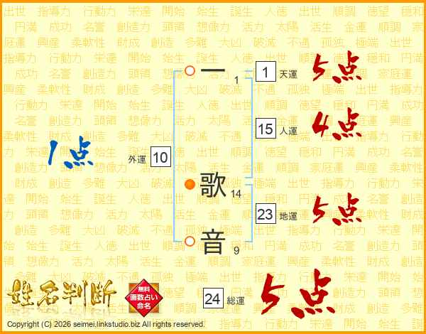 一歌音さんの総運は24画の5点!