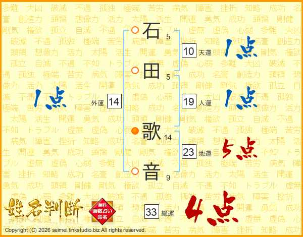 石田歌音さんの総運は33画の4点!