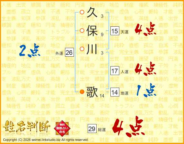 久(3画)保(9画)川(3画) 歌(14画)