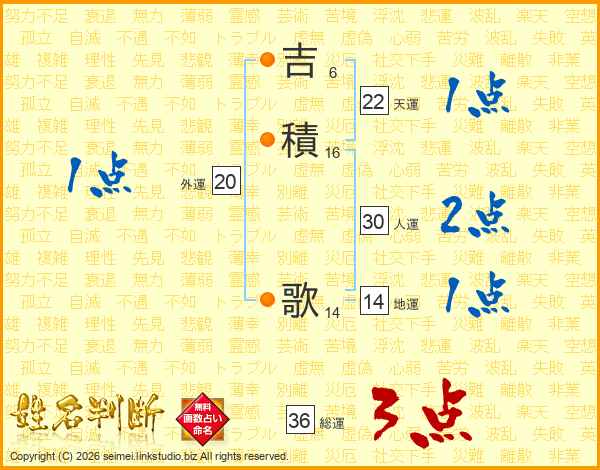 吉(6画)積(16画) 歌(14画)