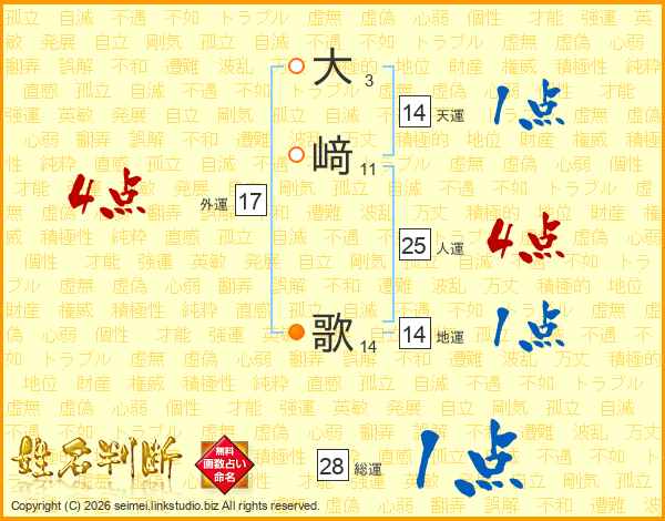大﨑歌さんの人運は25画の4点!