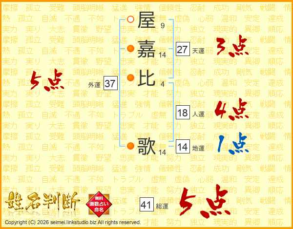 屋嘉比歌さんの外運は37画の5点!