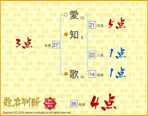 愛知歌さんの総運は35画の4点!
