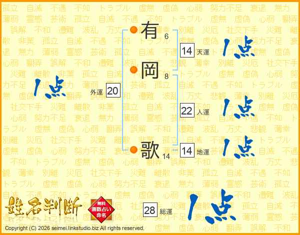有岡歌さんの総運は28画の1点!
