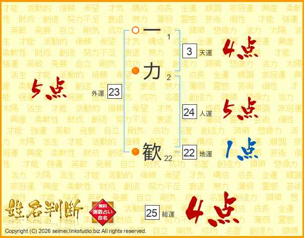 一力歓さんの総運は25画の4点!