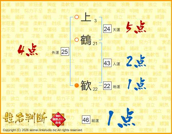 上鶴歓さんの総運は46画の1点!