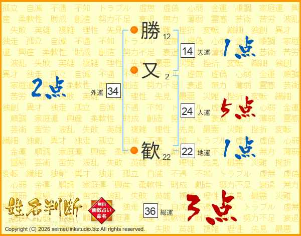勝又歓さんの天運は14画の1点!