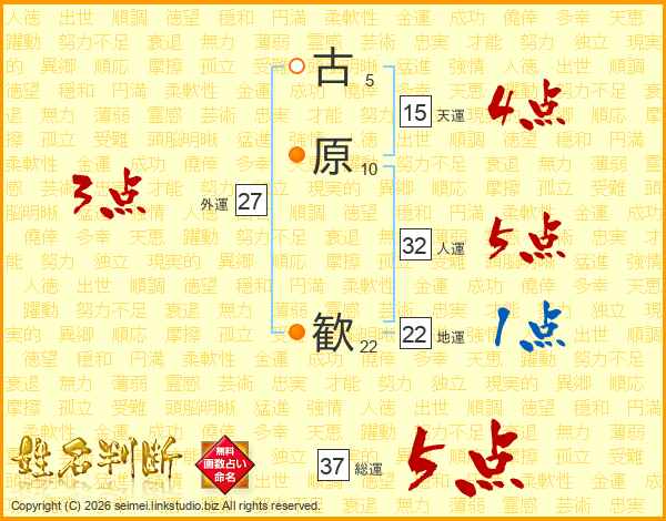 古原歓さんの総運は37画の5点!
