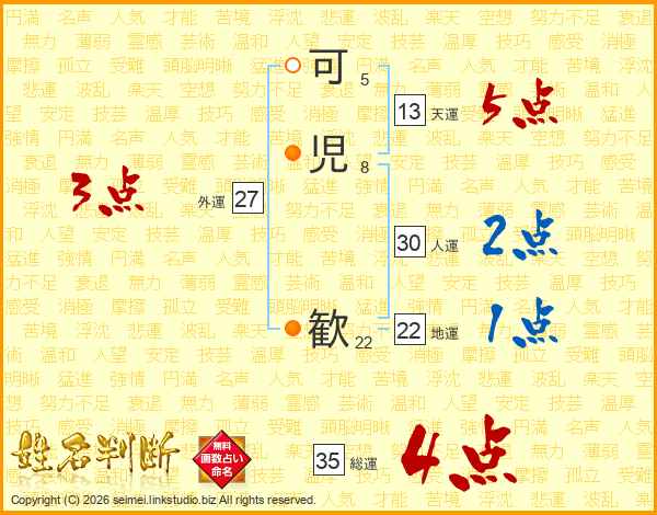可児歓さんの総運は35画の4点!
