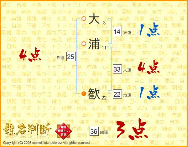 大浦歓さんの人運は33画の4点!