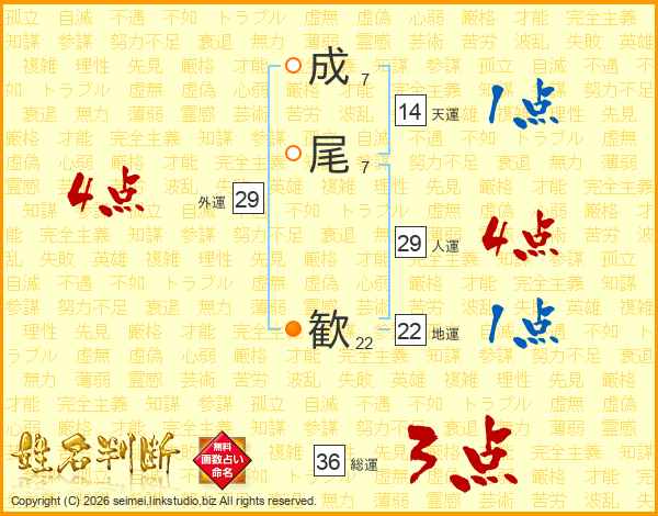 成尾歓さんの人運は29画の4点!