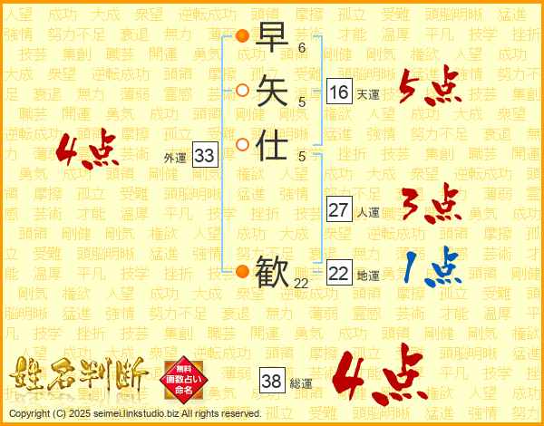 早(6画)矢(5画)仕(5画) 歓(22画)