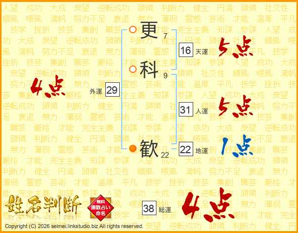 更科歓さんの総運は38画の4点!