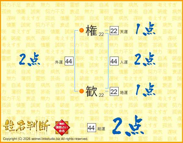 権歓さんの総運は44画の2点!