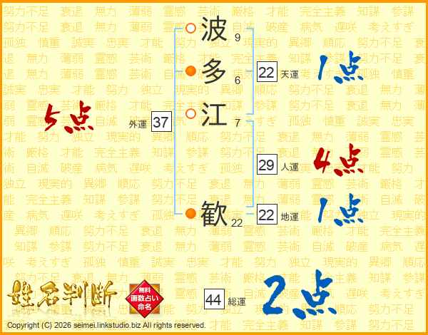 波多江歓さんの地運は22画の1点!