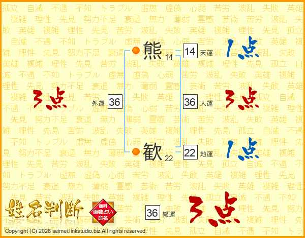 熊歓さんの人運は36画の3点!
