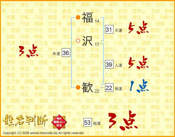 福沢歓さんの総運は53画の3点!