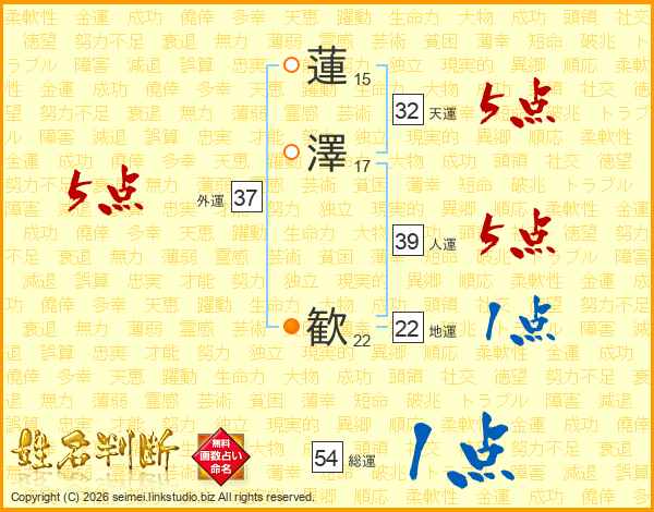 蓮澤歓さんの人運は39画の5点!