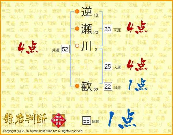 逆瀬川歓さんの外運は52画の4点!