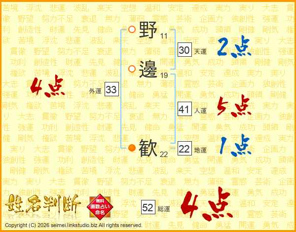 野邊歓さんの地運は22画の1点!