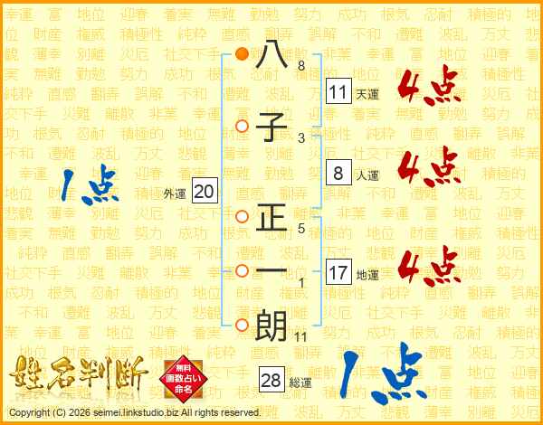 八子正一朗さんの総運は28画の1点!