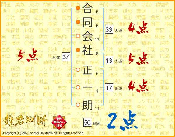 合(6画)同(6画)会(13画)社(8画) 正(5画)一(1画)朗(11画)