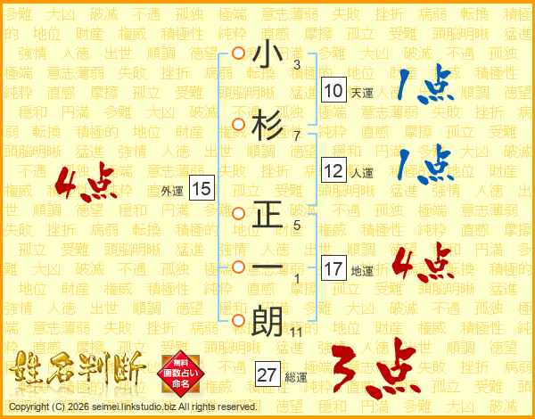小杉正一朗さんの総運は27画の3点!
